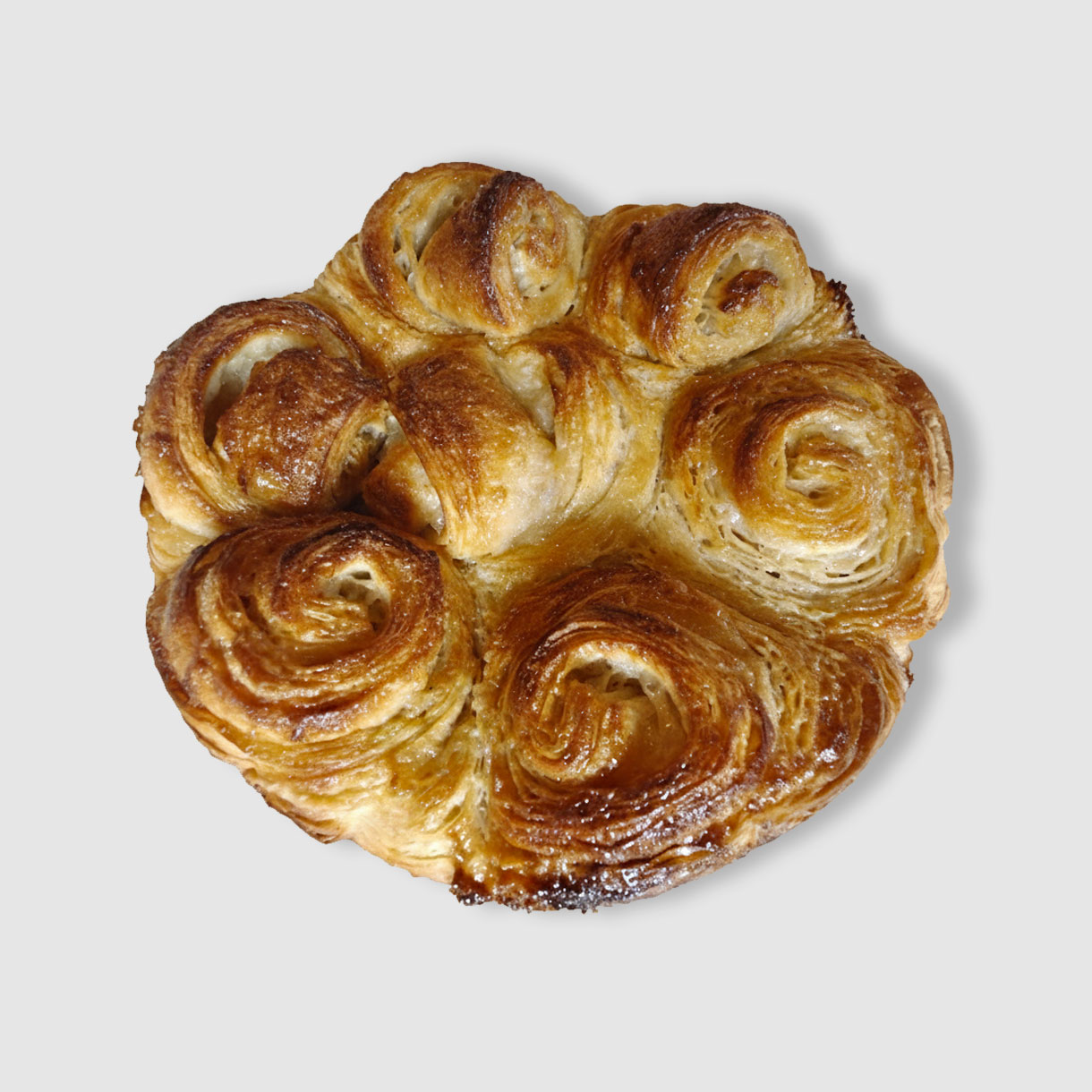 La brioche feuilletée combine la légèreté du feuilletage et le moelleux d’une brioche beurrée. Ses couches délicates offrent une texture fondante et croustillante à chaque bouchée.