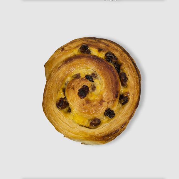 Un pain aux raisins pur beurre offre une pâte feuilletée moelleuse et parfumée, enroulée autour d’une crème pâtissière onctueuse. Les raisins fondants apportent une douceur fruitée qui complète parfaitement le croustillant doré de l’ensemble.