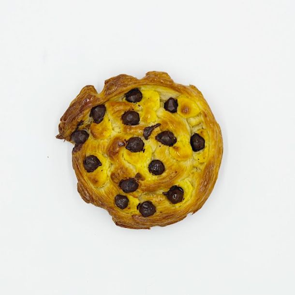 Un Suisse pur beurre offre une pâte feuilletée moelleuse et parfumée, enroulée autour d’une crème pâtissière onctueuse. Les pépites de chocolat fondantes apportent une douceur gourmande qui complète parfaitement le croustillant doré de l’ensemble.